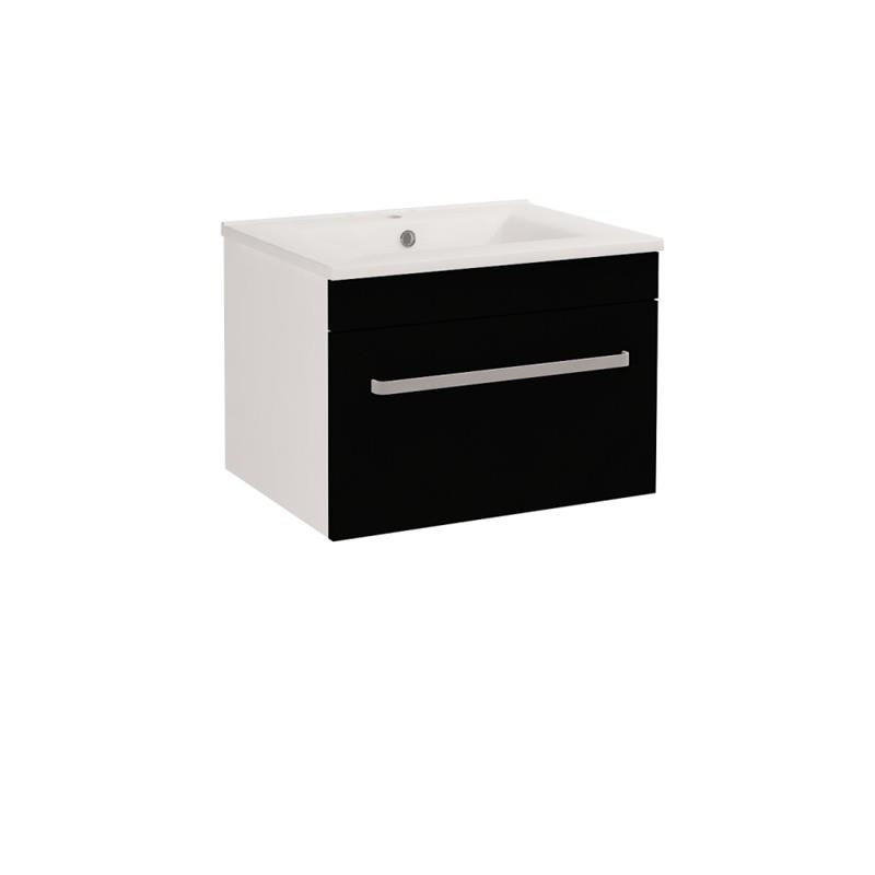 Koupelnová skříňka Dřevojas Aston SZZ 75 černá vysoký lesk včetně umyvadla z litého mramoru.